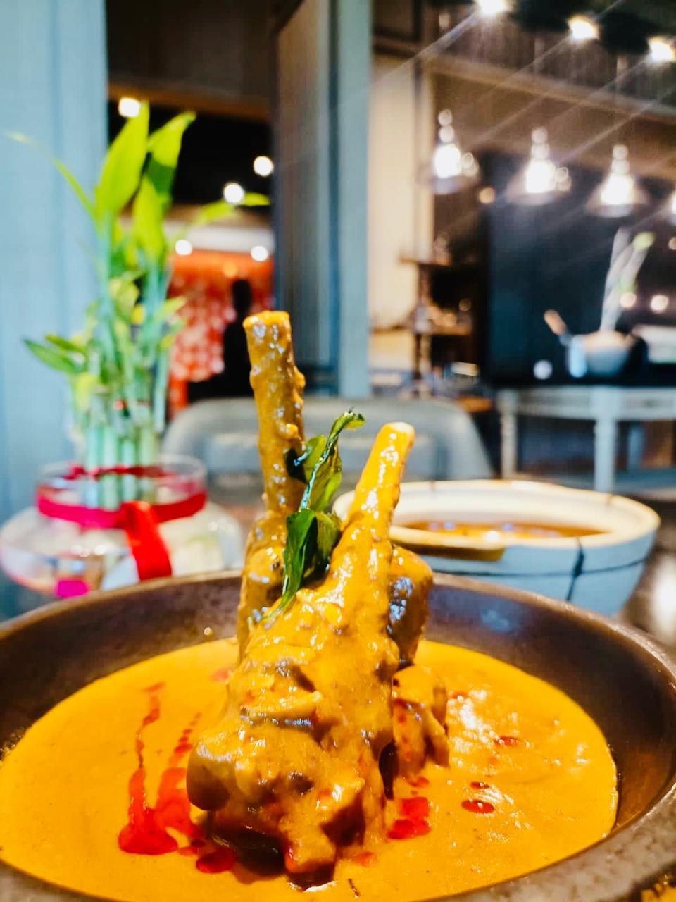 Inspired by Northern Thailand’s vibrant cuisine, this prawn curry features succulent shrimp simmered in a rich coconut-based gravy infused with lemongrass, galangal, and Thai basil—comforting, spicy, and deeply aromatic.