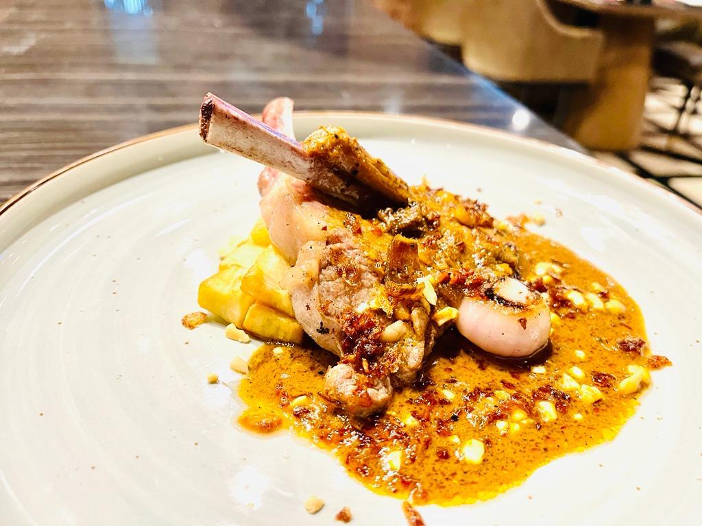 A modern interpretation of a street-style classic. Tender pork belly is slow-cooked, then caramelized with palm sugar and chili, paired with pineapple chunks and crisp garlic slivers for a bold, balanced bite.