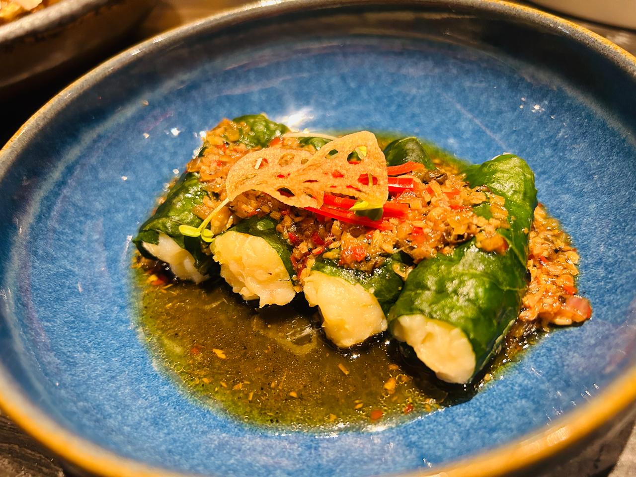 Fresh cod, gently steamed and served with a vibrant Thai chili-lime sauce. Complemented by seasonal vegetables like baby corn and bell pepper julienne, it’s a dish that’s light yet packed with zesty character.